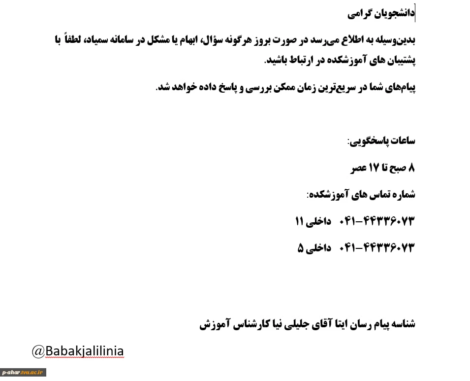 پاسخگویی به درخواست های دانشجویان 2
